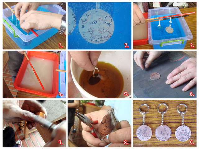 好巧..我們三人刻好作品放入腐蝕液時間相隔20分鐘..(我又想太多..做最慢完成><)