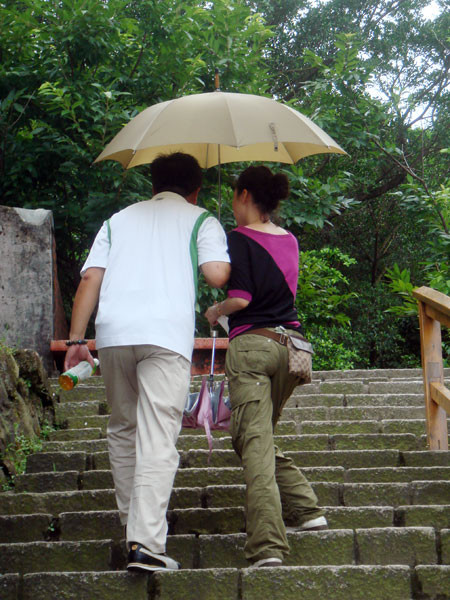 回程下著小雨..姐.姐夫撐著傘走在前面小倆口真是幸福甜蜜