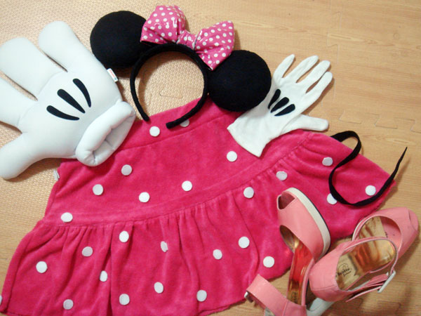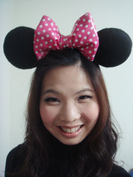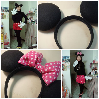 再將蝴蝶結跟米奇耳朵縫合..就變成米妮耳朵