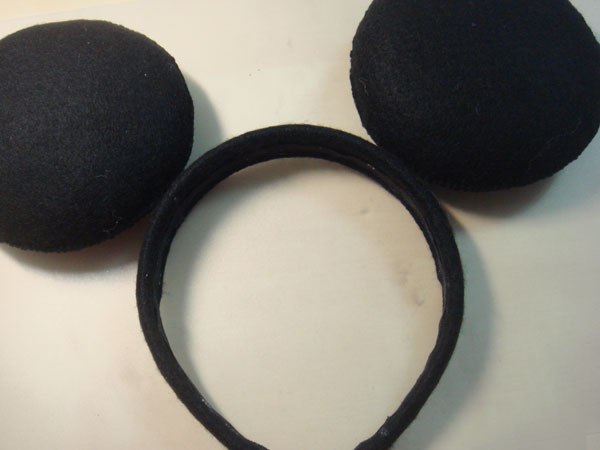 1.用黑色不織布將髮箍包起來..之後剪四個大圓..兩個兩個相對縫合裡面塞棉花逢起來