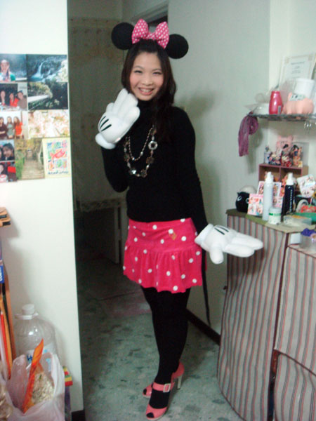 路上有很多在賣米妮的頭飾髮飾..但都不太符合我的想法跟要求