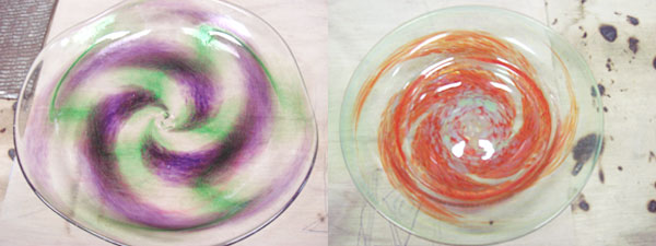 安井老師先用些玻璃液塑型..上色..再入爐燒