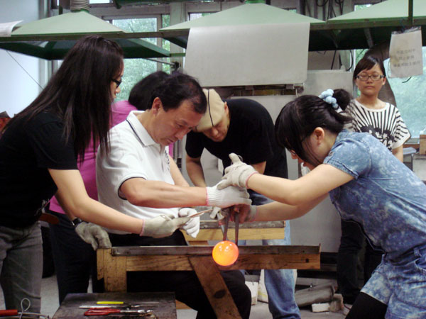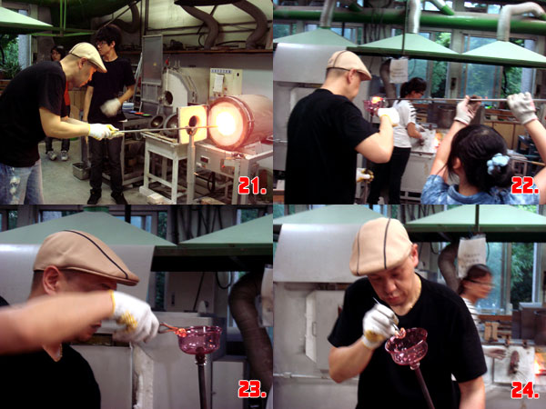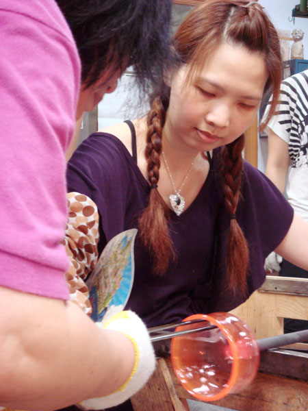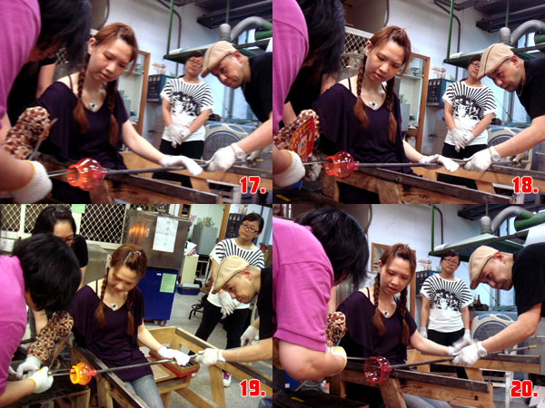 安井老師再進爐燒瓶口..我才發現我想要做底部爆烈..結果沒有做到